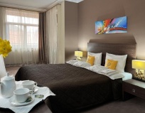 У нас был забронирован номер с балконом на 40 кв., оказалось, он ещё и 2х комнатный (кухня отдельно, не студия), что вообще прекрасно,если кому-то нужно поработать отдельно.