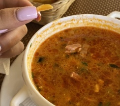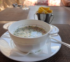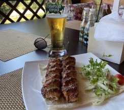 Обедали в столовой Хуторок, еда отличная, все вкусное и свежее, цены приемлимые. На ужин заказывали шашлык и люля, хачапури в баре Хуторок, это прям шедевр, люля тает во рту, единственное что не понравился покупной чизкейк, когда все такое вкусное и собственного приготовления, он прям немного испортил впечатление.
