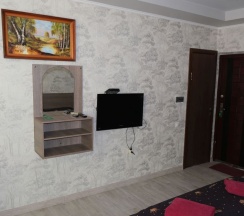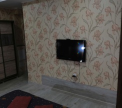 Номер - полноценная квартира, площадью 56 кв. м. с ванной комнатой, расположен на первом этаже гостевого дома, окна выходят во двор, отдельный вход от гостевой зоны. В номере кухня, стиральная машина, холодильник, газовая плита, микроволновка, спутниковое телевидение, ТВ с диагональю экрана 40 дюймов. Мебель - шкаф, прихожая, двуспальная кровать 160*200, два двуспальных дивана, шкаф, туалетный столик, гладильные принадлежности, три сплит-системы.