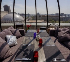Красивое место с хорошим сервисом! Очень классный ресторан на крыше, с необычным видом на город! Вернемся снова и снова!