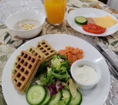 Очень нравятся завтраки. Особенно завтрак лайт за 350 руб, который с сырниками или блинчиками на выбор. Из расширенного завтрака за 500 руб. предпочитаю шпинатную вафлю с рыбкой. А ещё каши вкусные, я их не очень люблю, но здесь уплетаю за обе щеки. В будние дни в кафе при гостинице действует бизнес ланч - вкусный и приятный по цене. Удобно, что всё в одном месте и не надо никуда ехать/идти пешком по улице (особенно зимой в мороз). Покушать я люблю, поэтому про это так подробно 🙂
