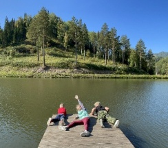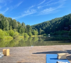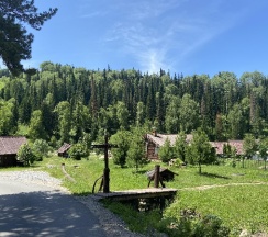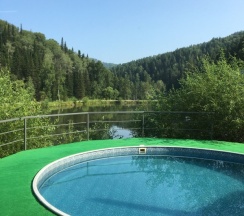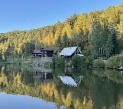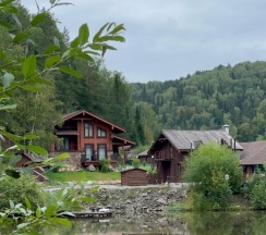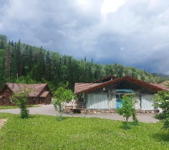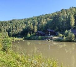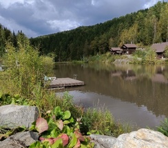 База прекрасная, уединение в тайге, совсем недалеко от цивилизации. Сети нет, что по своему плюс, но есть вай фай. Территория огромная, велосипед брали на прокат. Много беседок и зон отдыха. Ресторан оставляет желать лучшего… волосы в салате говорят сами за себя. Картофель был старым, и в принципе сюда я бы больше не зашла. В общем бочка мёда с ложкой дегтя