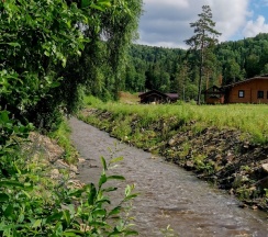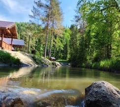 Отличные локации. Есть пруд и горная река, места для шашлыка, уютные номера или отдельностоящие дома.
