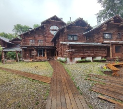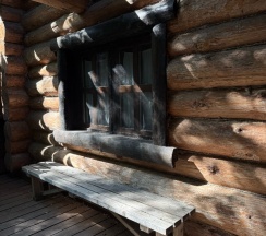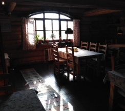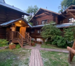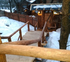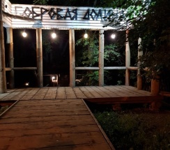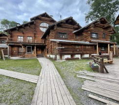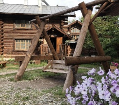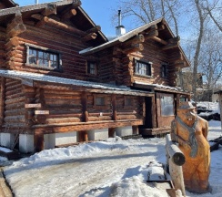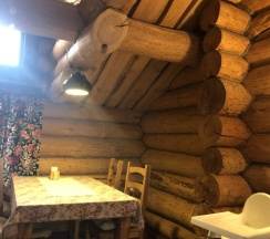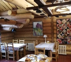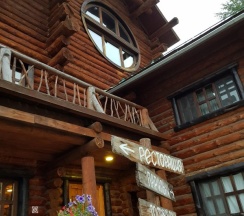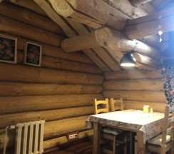 Само здание - из рубленого дерева, внутри ощущаешь себя как в детсве родителей - уютно.