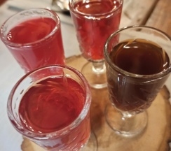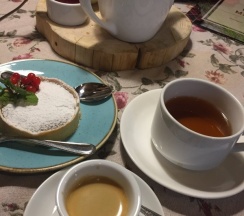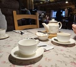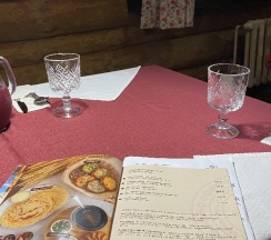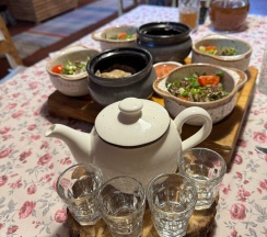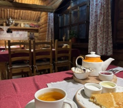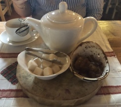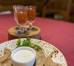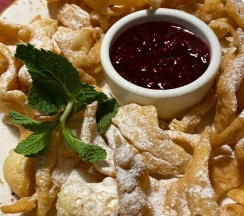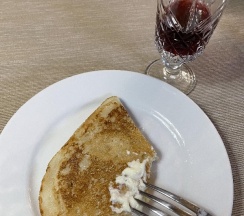 Заказывала многое, но пирог с гусём и кашей разочаровал, не пропекся до конца. В знак извинения принесли хрустящий хворост с вареньем. Довезла его даже до мамы, ей понравилось.