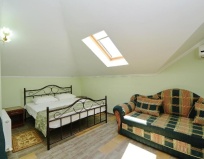 Отдыхали в начале августа 2023 года. Жили на 3 этаже и на 2 этаже, номера на троих, переселение было заранее обговорено с администратором. На третьем этаже окна номера выходили на горы, вид потрясающий. На балконе есть сушилка для белья, стол и стулья. В номере всё чисто и всё работало. На втором этаже номер был такой же по площади, но окнами на бассейн. Визуально матрасы на 3 и на 2 этаже одинаковые, но на 2 этаже так удобно спалось, спина впервые за долгое время не болела вообще после пробуждения. Это магия какая-то! В столовой я каждое утро покупала творожную запеканку, она была просто бомбическая. Сыну очень нравились пончики. В баре у бассейна покупали прохладительные напитки, чипсы, заказывали картошку фри (она тоже очень вкусная). Бассейн классный, дети там проводили много времени, плавали и ныряли до самого закрытия. Большой плюс, что есть уличные туалеты - не нужно из бассейна бегать в номер по нужде, особенно удобно для детей.Утюг на этаже, воспользовались 1 раз. Чайник тоже на этаже, тоже только 1 раз понадобился. Гостевой дом в целом очень понравился. Но место, где расположен отель, детям не очень понравилось - им нужно много магазинчиков, кафешек, развлечений, а здесь тихо и спокойно. Больше всего понравился пляж "Улётный берег", жаль, что мы нашли его последним, он просто супер- в бухте уже был кисель из медуз в воде, а на этом пляже вода кристально чистая, территория с шезлонгами, бунгало, есть бистро, туалет, водные развлечения (банан у них был какой-то необычный и водитель очень весёлый, водная прогулка детям очень сильно понравилась). За развлечениями ездили в парк атракционов на центральной набережной и в Сафари парк, везде понравилось.