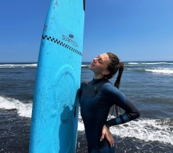Была у ребят сначала на одном уроке, а потом приехала в серф-кемп.