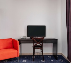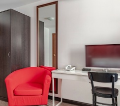 Уютный, современный номер, площадью 15 кв.м., с одной двухспальной кроватью. Оснащен всем необходимым, для комфортного проживания. Идеально подходит для командировочных и путешественников