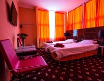 Понравилось: Отдыхали в Сочи в 4. Т. к. возможность оформить поздний выезд из-за загруженности отеля была сомнительной, накануне отьезда заказали здесь номер ч. б. отдохнуть, душ принять (по цене делюкс тут ровно половина от продления там 😃). Оптимальное соотношение цена/качество. Не ждите каких-то супер удобств, но все самое необходимое есть. В отеле чисто и в номере чисто. Ковролин, но никаких неприятных запахов или пыли (есть с чем сравнить). Санузел маленький, душ-шторка, но за пределы выделенного под душ места ничего не вытекает, полотенца, белье чистые, швы между плитками чистые белые, сантехника чистая, напор воды хороший. Из косм принадлежностей - жидкое мыло. Кондиционер работал, фен сразу выдали, есть маленький холодильник, на рецепш. стоит кулер с водой. В номере удобный стелаж с 5 большими полками, в нише перекладина с вешалками (под шкаф), при входе крючки для одежды, два креслица маленьких, столик с настольной лампой. Место очень удобное, самый центр, от вокзала сразу направо. Рядом все тусовочное. Напртив через дорогу сразу за KFC столовая с демократичными ценами и большим выбором. Обедали - все норм. До рынка 5 - 10 минут.
