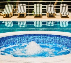 Что понравилось: 1) Отличный бассейн, расположенный между двумя корпусами отеля. Комфортная температура воды, чистая вода и периметр вокруг бассейна. Бассейн открыт с 8 часов утра и до 7 часов вечера (все-таки хочется, чтобы бассейн был доступен чуть дольше вечером); 2) Хорошее расположение отеля: есть и солнечная и теневая стороны, много зелени вокруг, вечером можно отлично посидеть на балкончике; 3) Вежливый и доброжелательный персонал отеля, ежедневная влажная уборка номера; 4) Мебель в номере новая, есть электрический чайник и небольшой холодильник; 5) Просторная душевая, отличный напор воды.