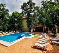Спасибо большое за отдых , за хороший приём , приветливый персонал. Отдыхали с родственниками снимали два номера, очень все понравилось, бассейн чистый, территория ухоженная , в номерах чистота. В столовой очень вкусно готовят . На каждом этаже имеется гладильная доска и утюг. Каждый день производится влажная уборка. Море находится не далеко, проходишь через небольшой лесок мимо санатория Жемчужина моря , не надо карабкаться в гору . На территории имеется мангал . При отеле есть парковка . С первого по третий этаж есть лифт. Сейчас ожидаю на ресепшне когда за нами приедут и пишу отзыв.