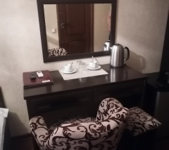 Хороший отель, чистый номер. Полотенца свежие, кровать мягкая, уютная😊 В номере диван, кровать, телевизор, столик с зеркалом, душ с небольшим комплектом шампунь+гель, мыло твёрдое. Нет завтраков, к сожалению. Мы бронировали утром, заехали ближе к полуночи. Бронь без предоплаты. Номер нас дождался, оплатили на месте по факту заселения. Спасибо большое! Очень удобно, хотя, конечно, с риском для отеля) Мало ли мы бы сдались и не доехали до Волгограда. Остались бы где-то в другом месте, а отель потерял бы выручку. Но, к счастью, мы доехали, а они нас дождались) В номере есть чайник, но нет пакетиков чая. Их можно приобрести на ресепшен за 10 или 20 рублей за пакетик, не помню точно)