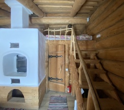Первое спальное место - палати, матрас на печи; на печь нужно подниматься по небольшой деревянной лестнице; спальное место имеют небольшое ограждение - деревянные перила из веток.
