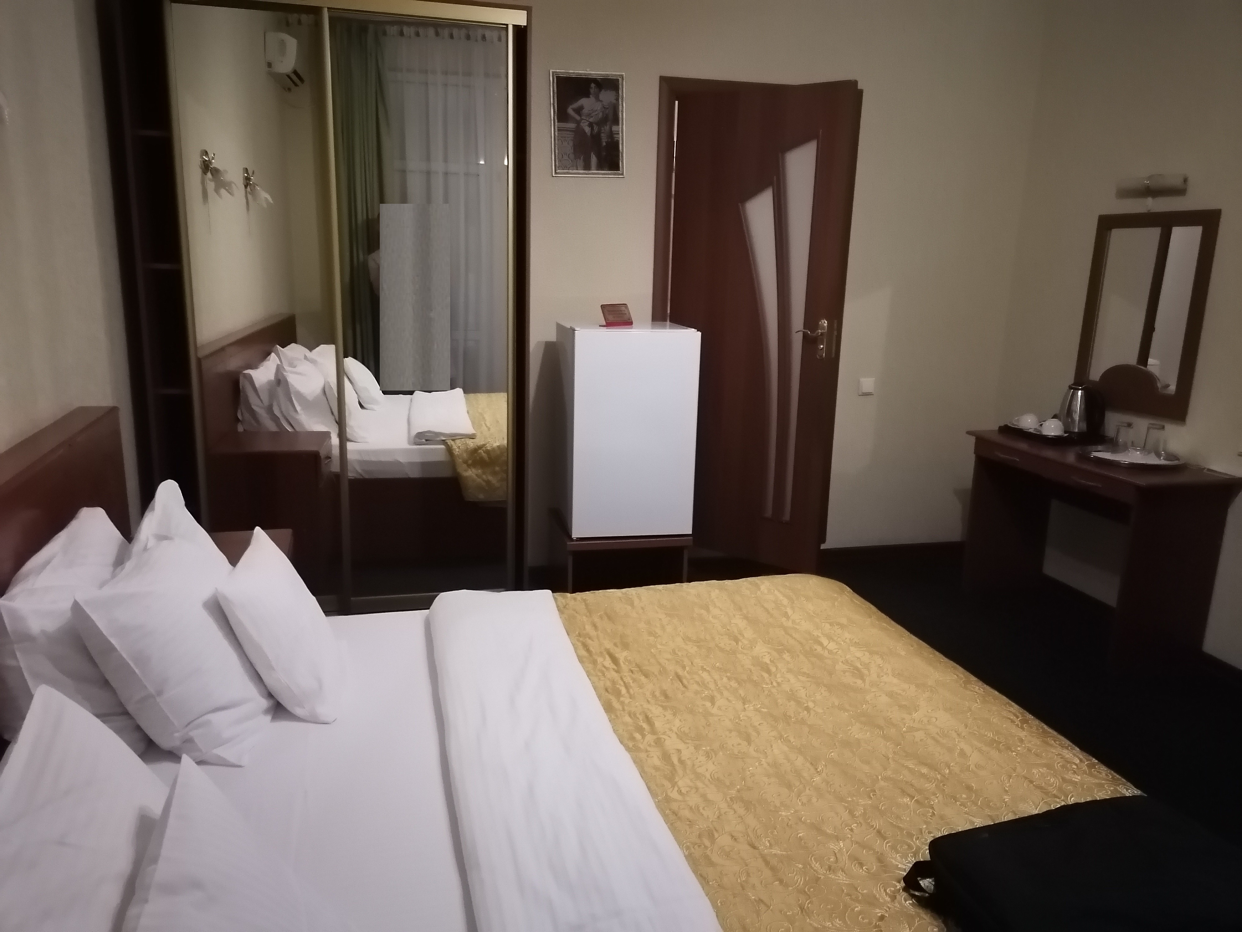 Останавливались на 1 ночь я и старший сын. Были несколько дней проездом в Туапсе. В наличии был номер за 4500р, с односпальной кроватью, на 3-м этаже. Сам отель расположен в отличном месте, у реки Паук и до моря очень близко (метров 400, не более). Авто можно припарковать на улице рядом с отелем, мы местечко нашли, а вот в сезон могут быть сложности. Сам номер уже подустал, пятёрку ставлю лишь за то, что были свободные места и нам нужно было в этом районе города остановиться. Есть балкон, увы запах табака заходит с соседних балконов и с улицы((( Также мебель и ковролин в номере устали, на три звезды уже не тянет. Холодильник с очень громким компрессором, пришлось его на ночь выключить (не пользовались). Ужасное качество ТВ каналов, рябь. За 4500 номер, а сервис и услуги на 3000 максимум. на ресепшн требовали свидетельство о рождении сына, я предоставил загранпаспорт РФ по которому покупаем без проблем билеты в РЖД и ни разу никто не просил свидетельство о рождении. Поэтому проведите профилактическую беседу с ресепшн. В цоколе есть столовая, утром немного перекусили кофе с блинчиками. Выселение быстрое. В общем пора обновлять номера и инфраструктуру отеля, цены слишком завышены за такое. Да, кровать скрипит так, что минимум 10 пар должны закрепить свои отношения в загсе))) ужас))