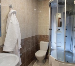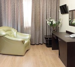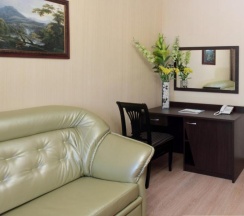 Двухместный номер с гостиной зоной (кресло, журнальный столик). Холодильник, мини-бар, душевая кабина, кабельное ТВ, Интернет, телефон, халат.