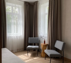 Встретили нас с теплом и гостеприимством, всегда были готовы помочь и ответить на все наши вопросы. Номер- очень комфортный , чистым, с прекрасным видом из окна во двор, очень тихо. А люстра с синей подсветкой- бомба, не видела еще такого)) есть отдельный пульт на нее.
