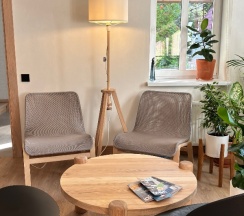 Понравилось: недалеко от достопримечательностей, старинный немецкий дом. хороший ремонт. разрешили воспользоваться столиками в кафе с красивым аквариумом. там же можно взять кипяток и чашки. тапки можно купить на ресепшен за 100р.