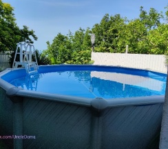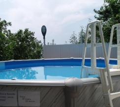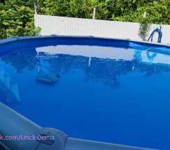 Есть зона для приготовления шашлыков, мангал, столик и скамейки, а также бассейн, правда за время нашего отпуска мы в нем не плавали, но это уже наша вина.