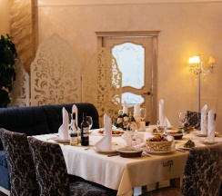 Оба зала заведения очень красивые. Если вам нужен шик- то вам в Тиффани зал на 200 персон. А если вы предпочитаете по-темнее и уютнее-то в меньший зал на 100 персон.