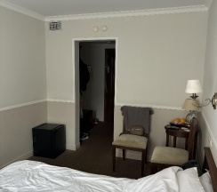 В отель приехали раньше, наши вещи поместили в комнату хранения и мы ушли гулять до позднего вечера, вернулись и заселились, в номере чистота,все необходимое есть, номер компактный, удобный, нас было двое, поэтому места достаточно, двуспальная кровать, 2 стула, стол, маленький холодильник, прикроватные тумбочки, в прихожей шкаф и тумба, санузел с душевой, все чисто, ничего не протекает и НЕ пахнет сыростью! Никаких тараканов и клопов! Окно в номере отрывается, есть сетка на окнах, кондиционера отдельного нет, есть приточный, немного душно, но открыли окно-спасло, правда шумновато, так как во дворе отеля есть дворик с детской площадкой и скамейками, там постоянно тусуется народ,кто опасается позднего возвращения в отель, можно подъехать на такси прям к воротам отеля, минуя пьяный народ во дворе, иногда их гоняет местная полиция, видели сами!