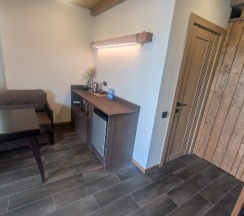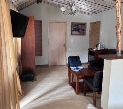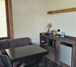 Проживали в отдельном домике. На первом этаже кухня с диваном и туалет, на 2 этаже кровать. Немного неудобно ночью спускаться по лестнице в туалет. Также нужно иметь в виду, что до домиков довольно крутой подъем по лестнице - нам было нормально, но для кого-то может критично. Нам помогли донести чемоданы, что было очень приятно. В домике было чувство уединения, красивый вид на сопку. Были халаты, тапочки, дрип-кофе. Единственное, я так и не поняла, почему при уборке не моют кружки ))