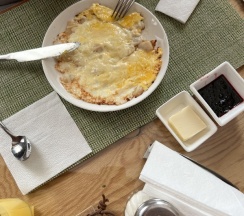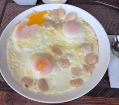 Завтраки отдельная любовь. Мы не меняли выбор, каждый день яичница с гребешком. Наличие гребешка и сыры порадовало.