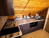 Единственный минус домика - плохая шумоизоляция. Во время сильного ветра под крышей стучит и завывает так, что спать невозможно. Из трёх ночей у нас одна была именно такая - под постоянный стук какого-то листа металла.