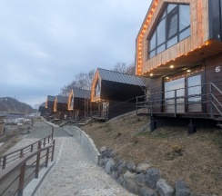 Снимали домик 3 , уютный, чистый, очень тёплый, вид с окна красивый, единственно нет в домике посуды и приборов, а так РЕКОМЕНДУЕМ