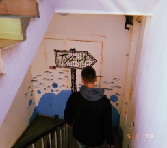 Пока поднимаешься по лестнице, уже поднимается настроение из-за надписей и указателей на стенах.