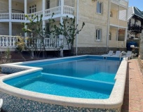 Огромным плюсом гостинницы является собственный бассейн с белоснежными лежаками.