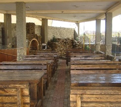 Там же огромная зона - покушать. С навесом, с мини прудиком, баром. Цены демократичные, обстановка уютная.