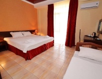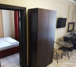 Стандартный номер, холодильник, кондиционер, чайник, тв. Небольшой балкончик. В номере чисто, удобные кровати. Тихий район, достаточно места для парковки авто