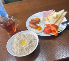 Здравствуйте! Хочу оставить отзыв на данный отель, останавливались в ноябре 2024, взяли комфорт с видом на горы полупансион. Вид шикарный, номер хороший, просторный. Ужин и завтрак замечательные, огромные порции и очень вкусные.