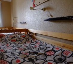 Койко-место дерево. Мне предложили нижнюю. Простыня в дырках, но чистая. Надо мной кровать, рейки проломлены. Нет отдельных полок. Точнее их как будто выдрали с корнем. Причем не только в моей койке месте. И опять дыра в стене, скорее всего бывший подразетник.