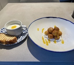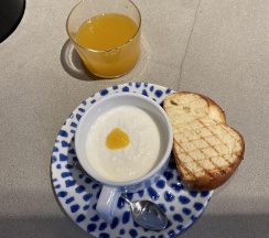 На завтрак выбор скудный, порции небольшие, но всё свежее и вкусное.