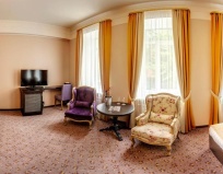 Хороший отель, находится в центре вокруг куча кафе и магазинов , набережная в пешей доступности. Высокие потолки, лепнина , ссориться очень красиво. Частенько, есть мини бар (не дорогой) , но и это же холодильник, если нужно что то охладить, придётся вытаскивать. У меня в лень заселения был ДР, принесли бутылку шампанского, поздравили, приятно. Подушки, это моя боль в гостиницах. Но здесь была очень хорошая, упругой, шея после не болит. В проживание включён завтрак, заеазала сырника, была очень удивлена подачей , все вкусно и кофе не из автомата.