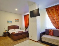 Мы отдыхали вдвоем с сыном в начале августа. Чистый, светлый, уютный небольшой номер с большими окнами и красивым видом из окна на пальмы и виноград. Особенно в жару порадовал тихий кондиционер. Нам очень понравилось, еще раз приедем)