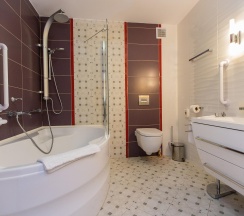 Номер более просторный и подходит для гостей с ограниченными возможностями.