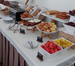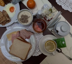 - завтраки не плохие, есть каши, один раз из трех дней был даже свежевыжатый морковный сок, наливают игристое. Но, ассортимент однообразен и маловат, из рыбы только маринованная сельдь, два вида сыра, немного мясной нарезки, йогурт есть только из кувшина, кофе из машины на 3 и 5 (удивительно для Питера). В целом, в роде есть много чего из завтрака, но в тоже время выбор этого какой-то ограниченный что-ли. В общем, завтраки в целом нормально, но если не возьмете не сильно потеряете, рядом полно кафе где можно отлично позавтракать. И да, внутренний дворик где проходят завтраки конечно живописен и уютен, в нем своя милая атмосфера, это без сомнения плюс.
