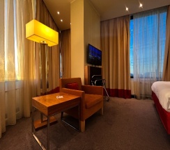 5. Номер просторный , чистый , но несколько время наложило отпечаток - видны следы старения , да и электрик видимо совсем что-то начудил- двумя выключателями включаются и выключаются большинство лампочек . Нет светового зонирования . Номер просит хорошего ремонта .
