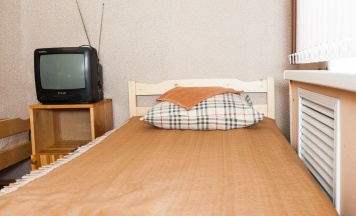 Кровать в общем двухместном номере. Номер оснащен двумя односпальными кроватями, местом для хранения одежды, телевизором, предоставляются полотенца. Общие удобства находятся на этаже.