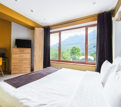 Идеальное место для уставших от шума горожан. Отличный панорамный вид на горы, регулярный трансфер до подъемников, горнолыжных курортов.