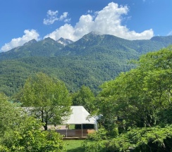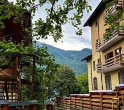 Идеальное место для уставших от шума горожан. Отличный панорамный вид на горы, регулярный трансфер до подъемников, горнолыжных курортов.