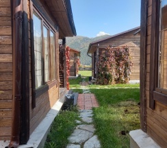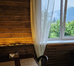 Территория ухоженная, шикарный вид, домики тёплые, чистые. Бассейн не тёплый, в +11 на улице, он был холодный, хотя обещали нагреть. Завтраки каждый день каша, по очереди идёт мясная-сырная нарезка или яйцо с сосиской+ какая-то выпечка.