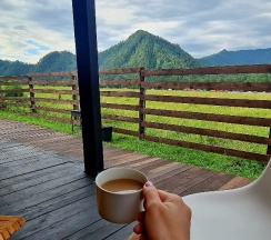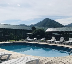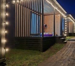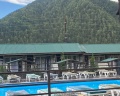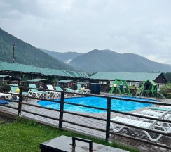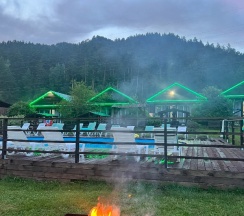Очень хорошо есть басеин, кафе, игровая. очень хорошо провели время для детей работает аниматор а родители могу просто посидеть в домиках и отдохнуть. Красивый вид из панарамного окна в спальне видно горы. Спасибо мне понравилось отдыхать с семьёй хорошо отдохнули. Персонал очень вешливый и внимательный.