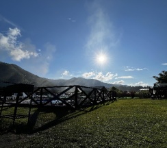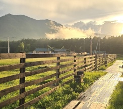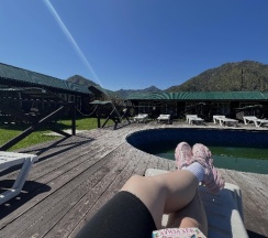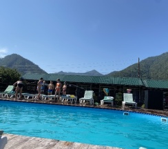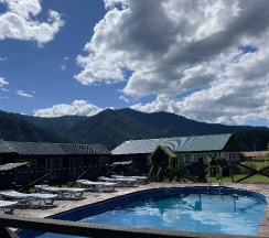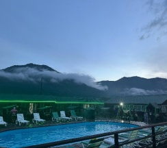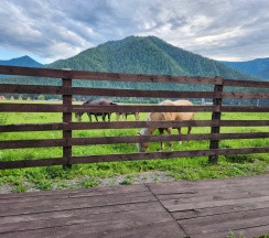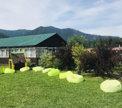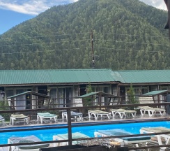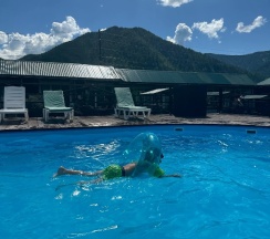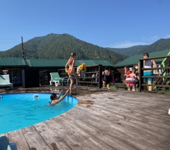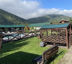 Замечательное место очень красивый вид рядом горы свежий воздух тёплый бассейн вкусная еда готовят сами очень вежливый коллектив есть детская площадка также детская игровая аниматоры которые занимаются детьми проводятся всякие конкурсы всем советую это место насчёт еды ставлю оценку 10 из 10 все очень вкусно и недорого бассейн чистят каждыми днями территорию убирают каждыми днями в номерах тоже всегда всё чисто вечером детям показывают мультики на проекторе если хотите отдохнуть в городской суеты то советую именно это место отдельное спасибо администратору Кристине за её отзывчивость всегда во всём помогала ставлю оценку этому месту 10 из 10