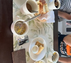 Еда в местном кафе: завтраки отличные! Огромные порции великолепно приготовленных блюд.