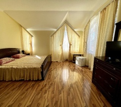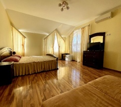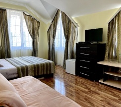 Останавливались на ночь, впечатления хорошие. Сам дом состоит из нескольких этажей с комнатами, которые полностью обставлены новой мебелью и техникой, есть WiFi. Администратор очень приятная, расскажет всё, переживает за каждого гостя. Если нужно Вас встретят с аэропорта или ж.д вокзала, имеется трансфер за доп. плату. На территории есть парковка, игровая площадка для детей и небольшой сад. Совсем рядом магазин "Пятёрочка" и круглосуточный мини-маркет. Единственный недостаток, что дом находится далеко от моря, но туда/обратно возят постояльцев, этим воспользоваться к сожалению не успели. Процветания дому и здоровья хозяевам!