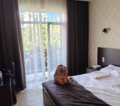 Выбирали отель на пару дней для продолжения отдыха в Геленджике и были приятно удивлены (!). Отель ооочень чистый; всё выхолощено, опрятно. Видна рука хозяина и управляющей. Тишина, можно хорошо выспаться) В номере всё есть и работает: холодильник, ТВ, душ с феном, шкаф с сейфом, есть балкончик. Твёрдая 4ка. У нас был вид на горы, и красивые закаты. Заказали завтрак один раз, завтрак вкусный, нам понравился и заказали ещё. До моря можно пройти коротким путём, недалеко пляж с лежаками, людей было немного . В общем, всем советуем!!!