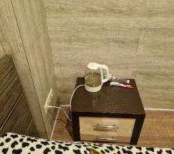 Главный плюс это близость к ж/д вокзалу конечно. Администраторы все вежливые и отзывчивые, всё подробно рассказывали, в том числе по телефону. Я выбирала трехместный номер по 2гис и единственный номер, где как оказалось имелось 3 раздельные кровати на хорошей площади вполне даже по приемлемой цене. В номере также имелся телевизор и чайник. У нас вайфай работал какой сказали, по тв программы не смотрела, я подключалась к рутубу, пульт современный, притормаживал сигнал, не критично. Кран в раковине очень маленький, но имеется общая кухня с необходимой техникой. Рядом магазин и столовая, которые нам тоже очень понравились. В целом уютненько, рекомендуем.